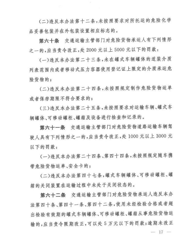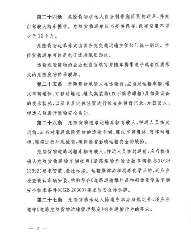 《危险货物道路运输安全管理办法》pdf版下载(点击文末阅读原文可下载):