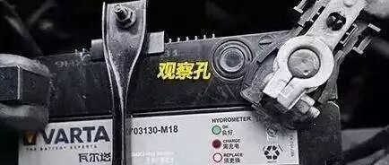 很多免维护蓄电池上都有一个观察孔,有一个灯显示蓄电池工作是否良好,绿色则为良好,黑色则需要更换蓄电池。(电池品牌不同,灯的颜色略有不同)当然了,这个观察孔只是一个参考项,因为有的车主反映绿灯的时候,也存在打不着火的情况。