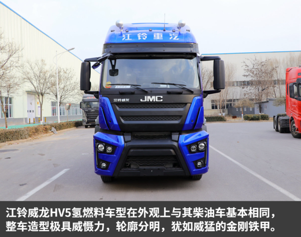 在今年武汉车展上,江铃集中发力于新能源领域,首次展示了江铃威龙FCV氢燃料牵引车。该车采用4x2驱动形式、双混合动力驱动,可智能切换氢燃料系统、动力电池系统供能,只需要不到10分钟即可以完成加氢,并实现400-500公里续航里程。
