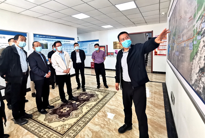 赵冲久副主席一行在S21阿勒泰至乌鲁木齐高速公路项目指挥部听取项目介绍。