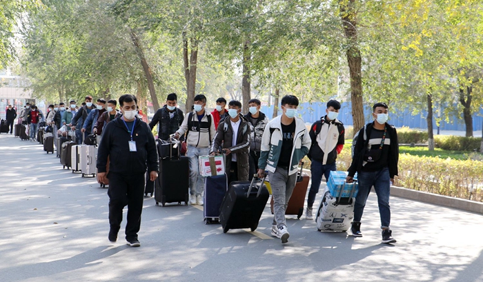 与此同时,10月17日,新疆交通职业技术学院也迎来了一批特殊的学生,来自交通运输厅驻岳普湖县和英吉沙县31个村的42名农村贫困家庭学子来校报到了。在这里,他们开启了为期3年的全日制中专学习生活。在校期间,学生享受“三免一补”(免学费、住宿费、教材费,享受国家补助)政策;享受助学金2000元/学年之外,个人只负担伙食费,其他杂费均由交通运输厅承担。优秀学员还可通过考试进入高职(大专)学习。