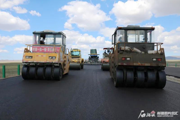 9月5日下午,在G575老爷庙口岸至巴里坤公路项目施工现场,随着最后一车沥青摊铺到位,项目沥青摊铺工作完成,主线实现贯通。