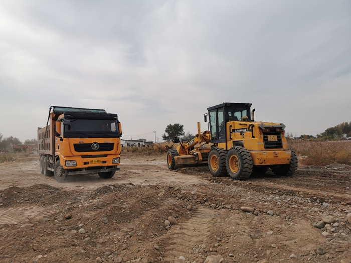 得知此情况后,玛纳斯分局与东梁村“访惠聚”工作队和“两委”实地调研了村内大型农机具停放问题,共同出谋划策,结合村庄规划实际情况,制定了东梁村大型农机停车场方案,并在分局的大力支持下,派出平地机、装载机等大型机械设备及技术人员,对东梁村停车场进行平整。