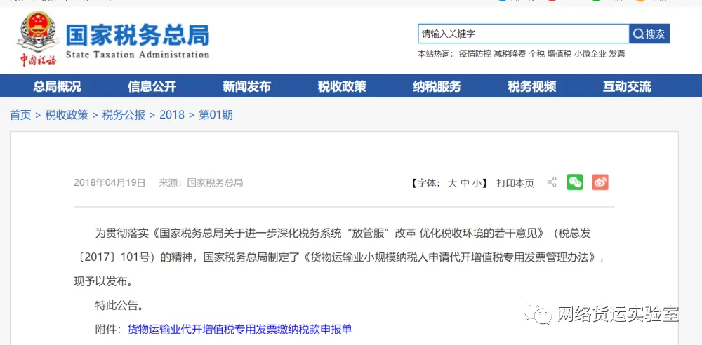 解读:网络货运行业的专门税务规范文件,该文件允许网络货运平台代司机开具增值税专用发票用于抵扣。