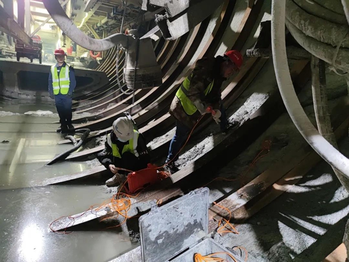?施工过程中,项目总部主要领导经常深入施工现场,强化安全环保质量管控措施,现场施工团队领导班子不间断轮流值班,及时解决工序中存在的问题,确保管理和技术到位、措施和工艺到位。同时,项目还积极开展了有针对性的隧道应急救援演练,在全线率先创建“智慧工地”安全管理系统,充分利用“5G+智能化+信息化”的融合技术,实现多层级智能化监控,形成对TBM掘进参数、环境监测、人车定位、灾害预警等数据的实时监控。