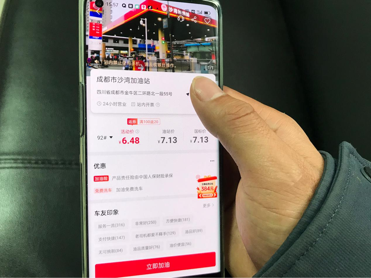 年初的时候,童力看到朋友在用团油App加油,司机圈子里的很多人都在用,不仅平时加油能省钱,团油上的油站还有各种优惠活动。今天,童力去加油就用了一次。当天油价是7.13元每升,活动价是6.48元每升,加一升油可以省6毛多,当天还有满100返20的优惠。童力的车加满一箱油是70升,油费是453.6元,这样算下来油费省了45.5元,返券又省了80元,用团油加油一次就省了124.5元。忙的时候,他的车几乎每天要加一次油,这一年算下来,能省不少钱。