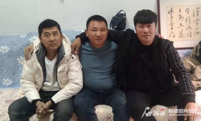 买买提·努尔东(左)、赵序磊(中)、曼苏尔·帕塔尔(右)在沛县相聚。图片由受访者提供