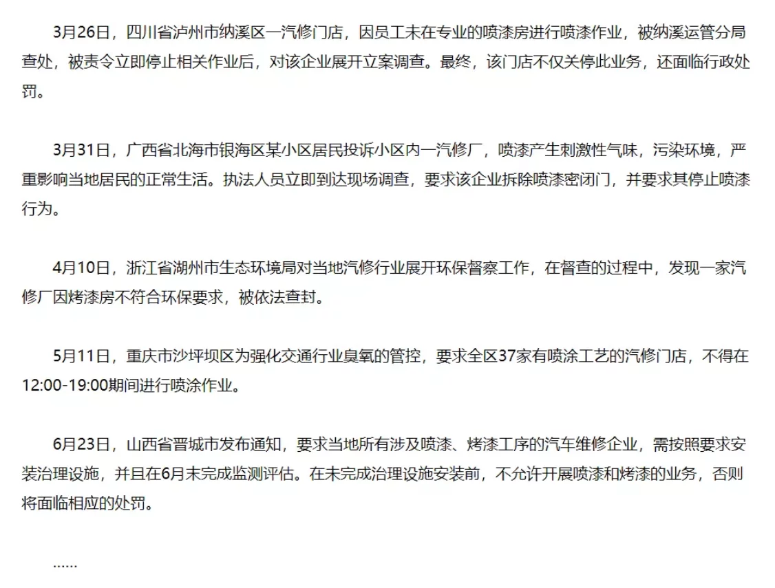 目前全国各地对于汽修行业的环保要求将会极大地限制传统钣喷行业的发展。