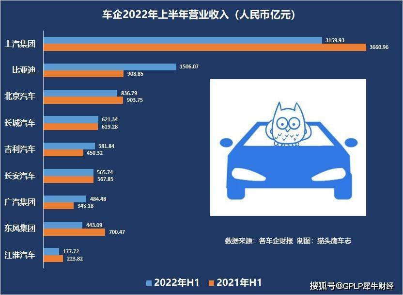 上汽、东风、北汽、长安、广汽、江淮作为国有车企,只有广汽集团在上半年实现了营业收入的同比正增长,上汽集团、东风集团以及江淮汽车下降比较明显。