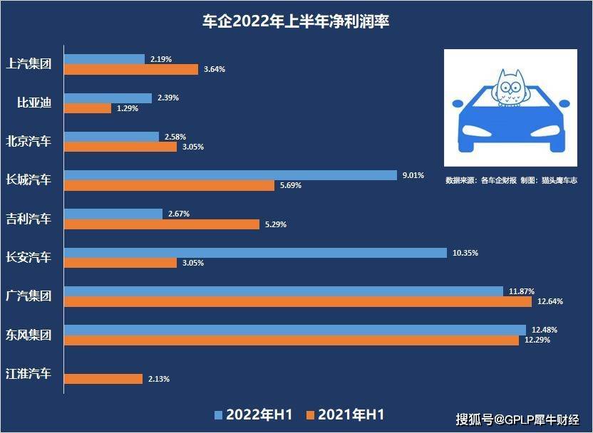 从财报给出的净利润率数据看,广汽集团和东风集团表现优异,继续保持着超过10%的净利润率,长安汽车因为23.54亿元的投资收益,净利润和净利润率都得到了大幅提升。自主品牌中,长城依然是那个最会赚钱的车企,9.01%的净利润,让比亚迪和吉利只能望其项背。